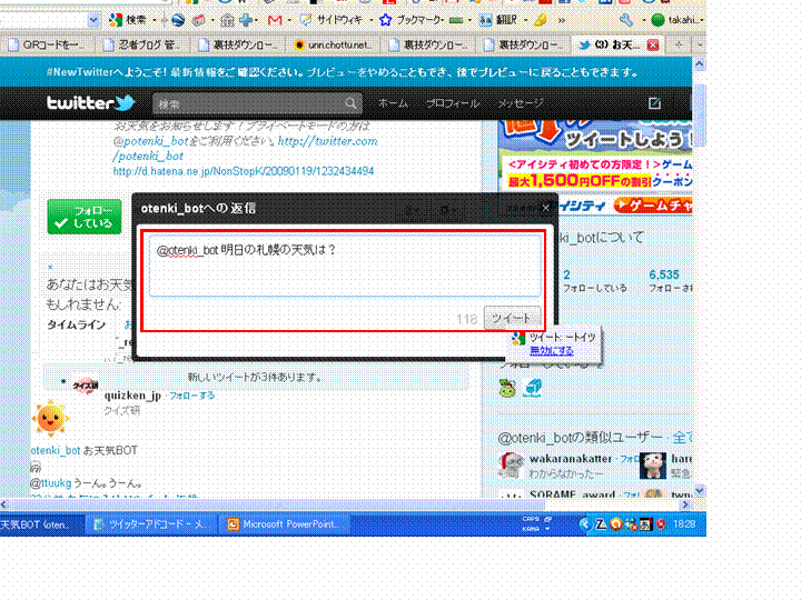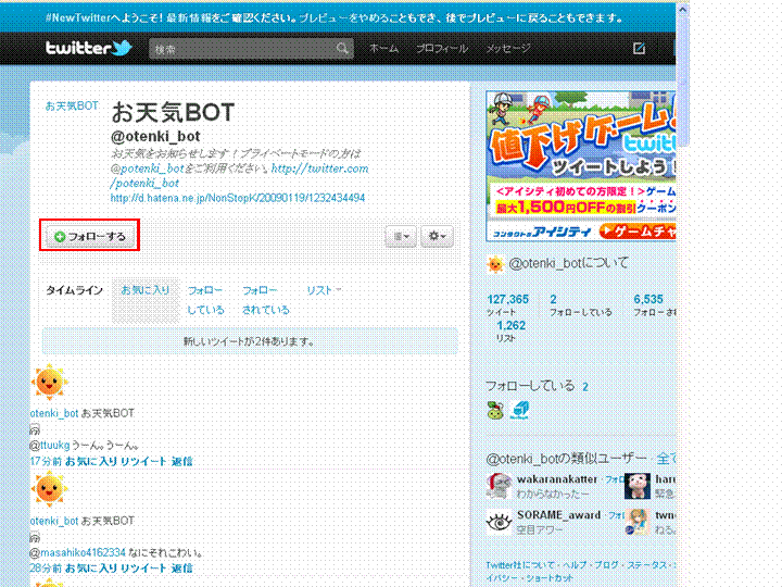 ツイッターにログインしている状態で下のリンクをクリック